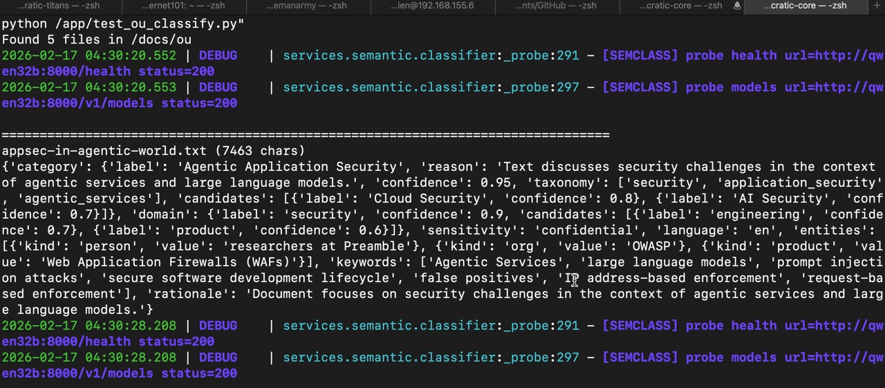 Below are examples of outputs from semantic_classification which demonstrates the structured output of the classification process using reasoning.